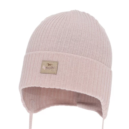 Dívčí podzimní/jarní čepice, růžová, zavazovací, s bavlnou, Tindra