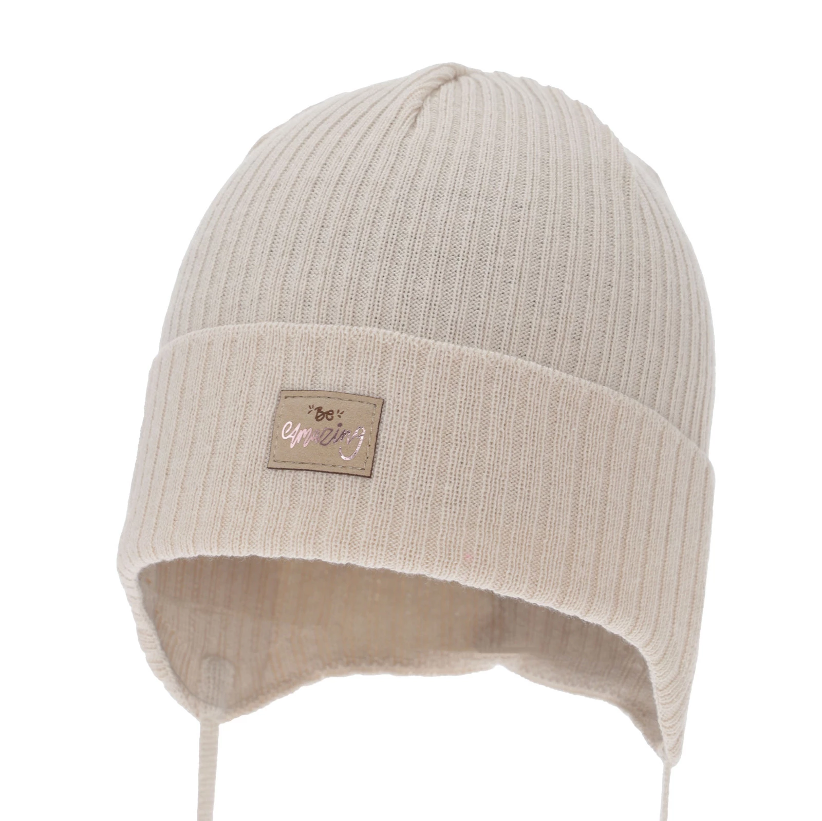Dívčí podzimní/jarní čepice, béžová, zavazovací, s bavlnou, Tindra