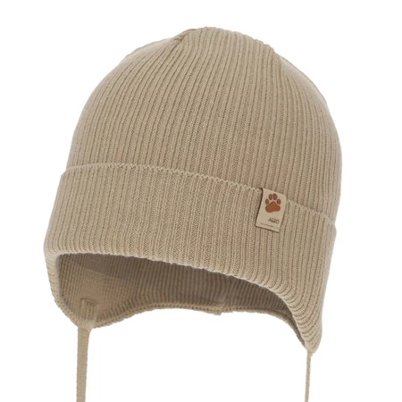 Chlapecká podzimní/jarní čepice, tmavě béžová, zavazovací, 100% bavlna, Elmar