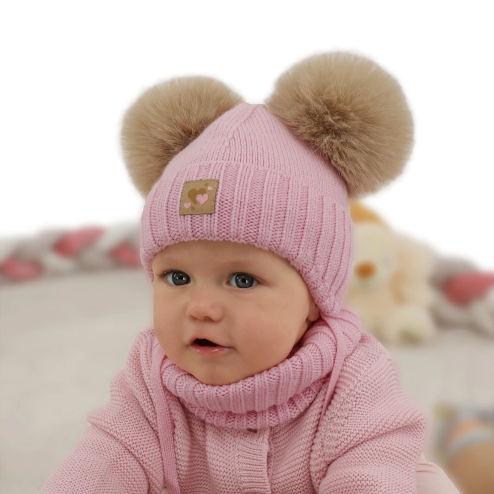 Čepice je podšitá vlněným fleecem, který poskytuje další vrstvu tepelné izolace a zvyšuje komfort nošení. Stylový žebrovaný úplet nejen krásně vypadá, ale také zajišťuje elasticitu materiálu pro perfektní přizpůsobení hlavě. Dva roztomilé bambulky z umělé kožešiny dodávají setu hravý a dívčí charakter. Praktické tkanice umožňují individuální nastavení utažení čepice podle potřeby.
