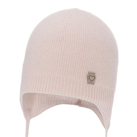 Dívčí podzimní/jarní čepice, růžová, merino vlna s kašmírem, zavazovací, Orida
