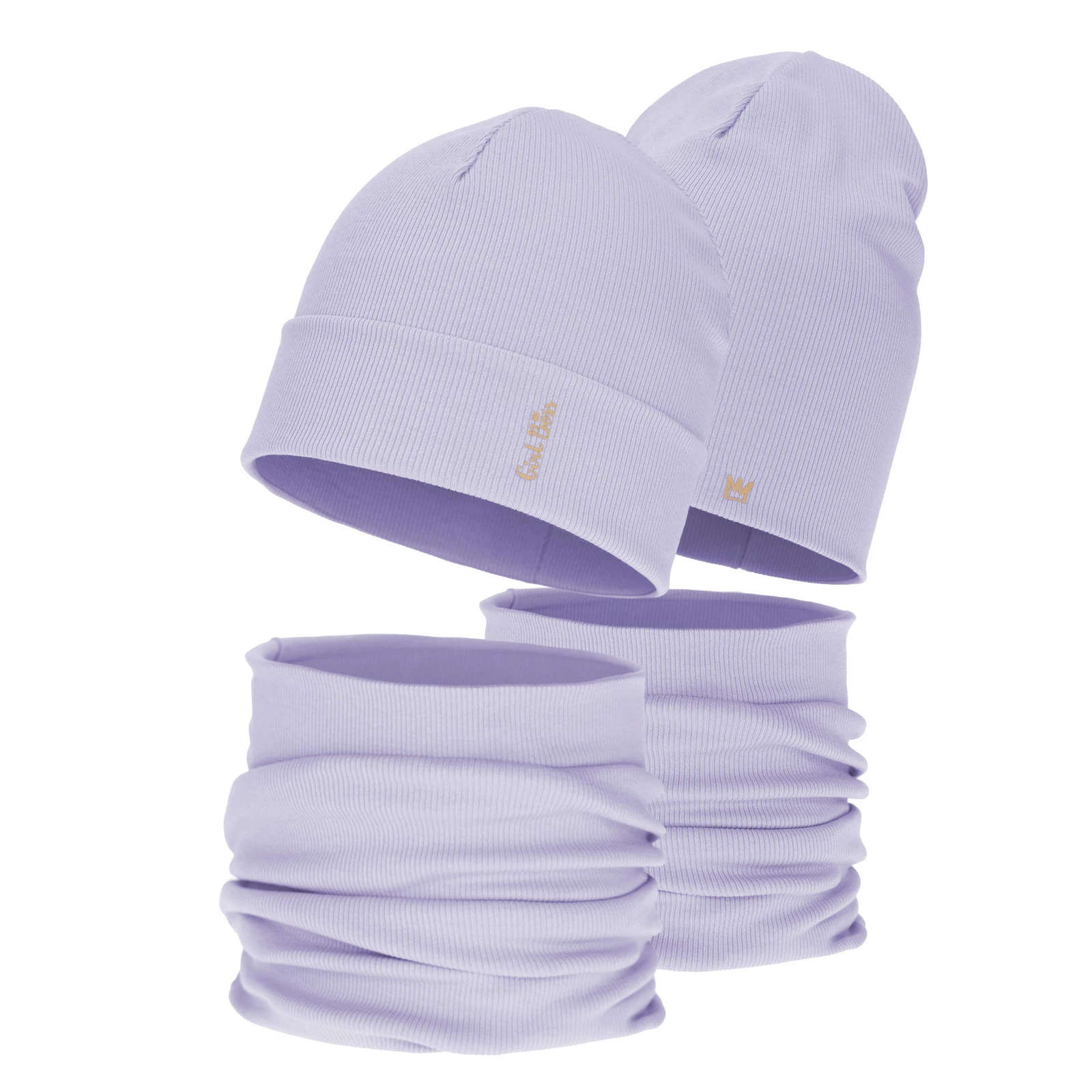 Komplet podzimní, jarní dívčí: čepice a tunel, bavlněný, fialový, Carina