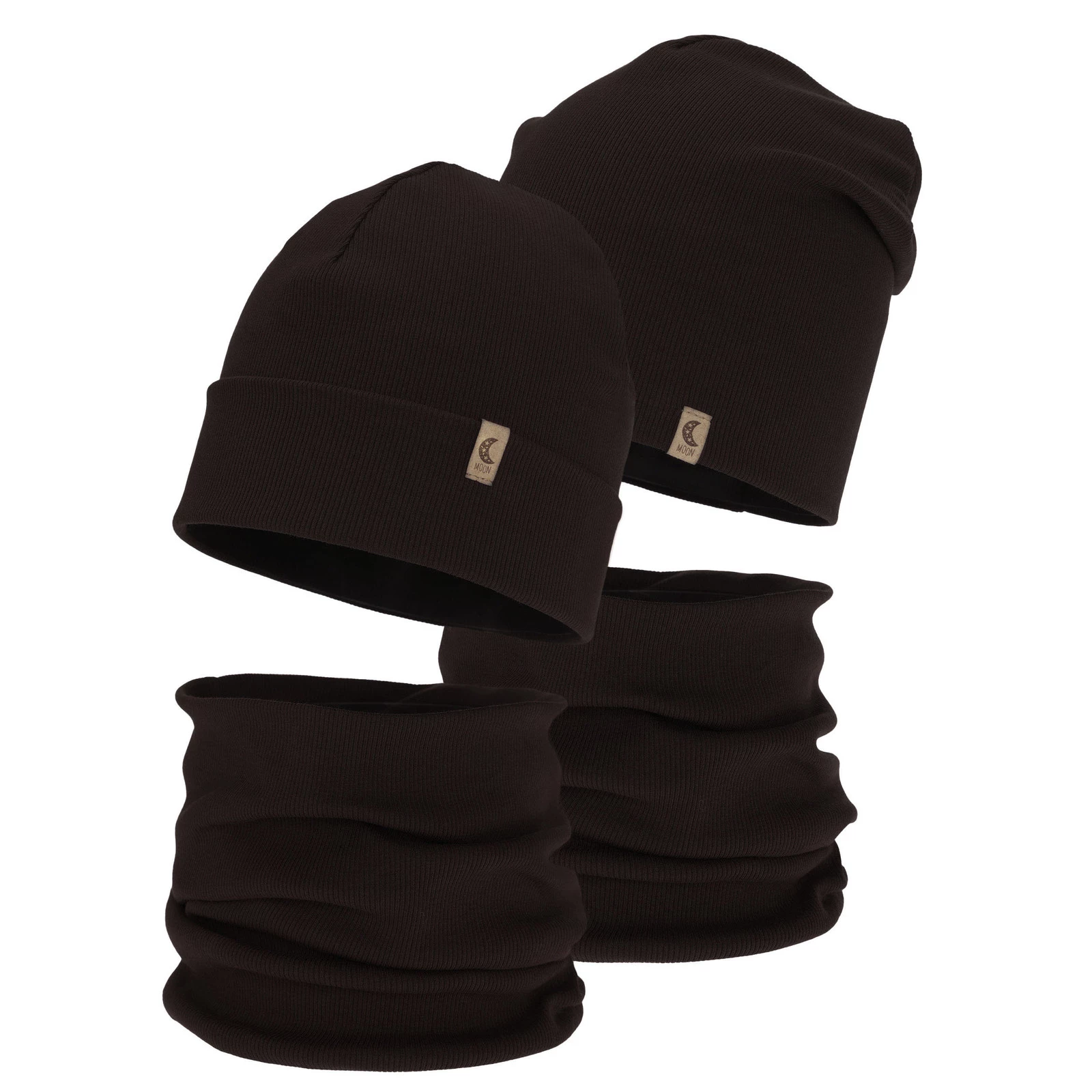 Komplet podzimní, jarní dívčí: čepice a tunel, bavlněný, tmavě hnědý, Bravura