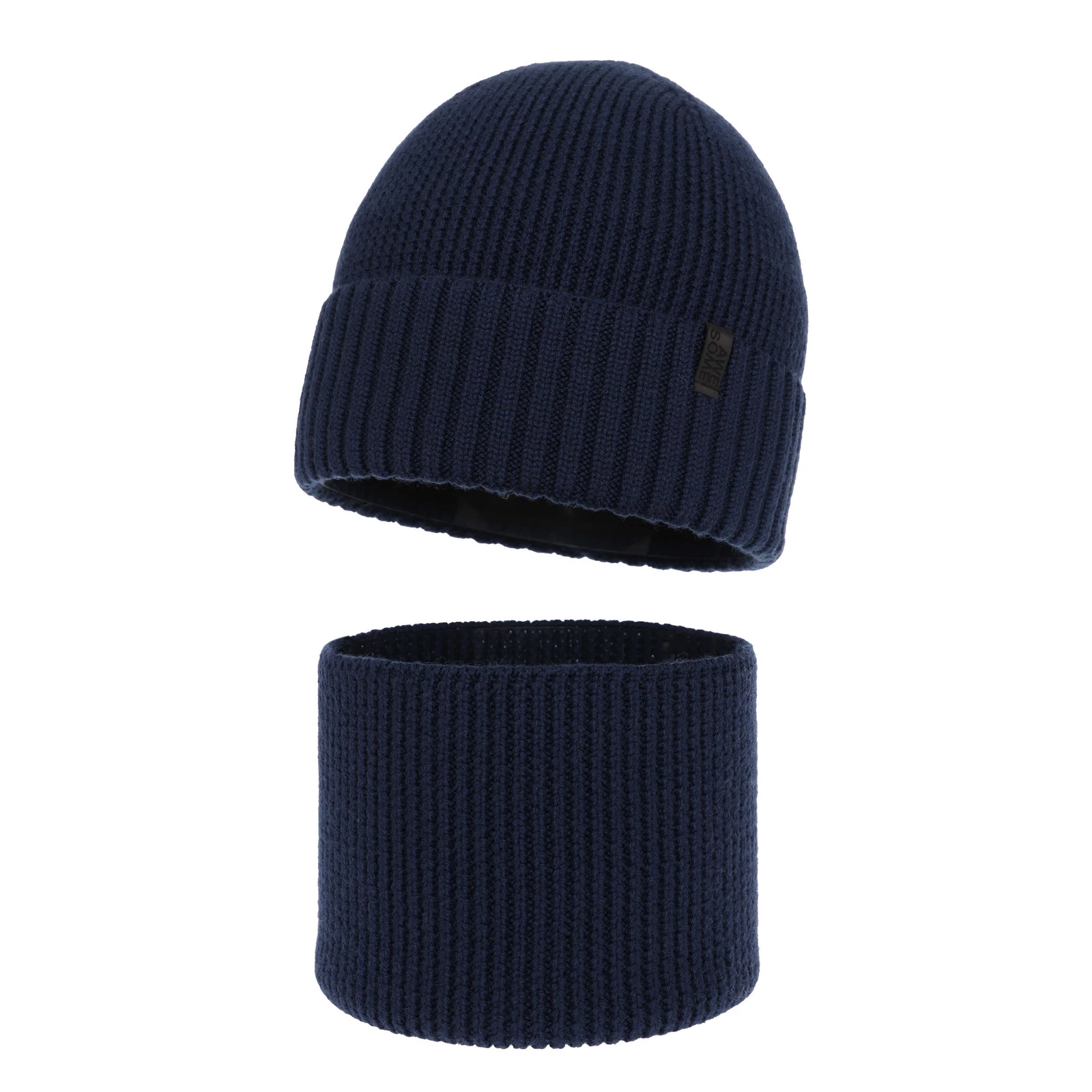 Čepice a tunel pro chlapce, zimní komplet, 100% merino vlněný, s podšitím z merino vlny, tmavě modrý Harbin