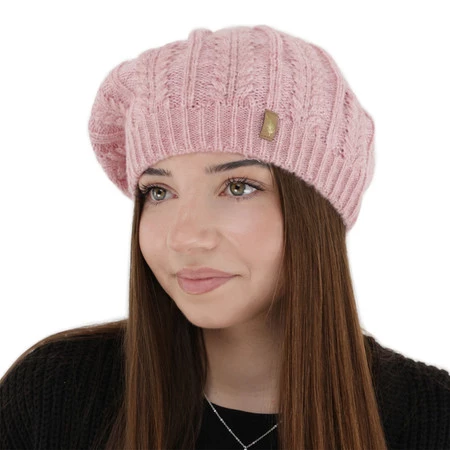 Dámský zimní baret, růžový, s merino vlnou, Senja