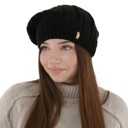 Beret dámský zimní, černý, s merino vlnou, Senja