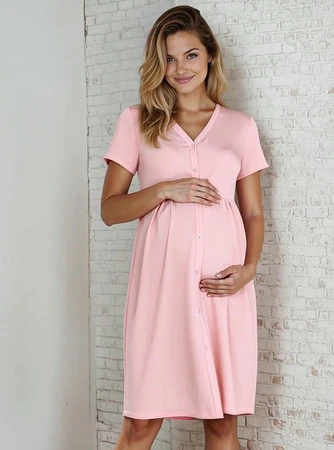Těhotenská noční košile Laura s krátkým rukávem - špinavě růžová