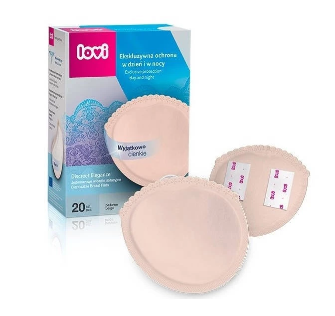 Prsní vložky jsou měkké a jemnéaby nedráždily citlivá prsa matek. Mají absorpční gelovou vložku, která zachycuje uniklé potraviny a zajišťuje pocit sucha a svěžesti po dlouhou dobu. Praktický lepicí pásek udržuje stélku na místě. Každý pár vložek je zabalen do plastového sáčku, aby byla zajištěna dostatečná úroveň hygieny.