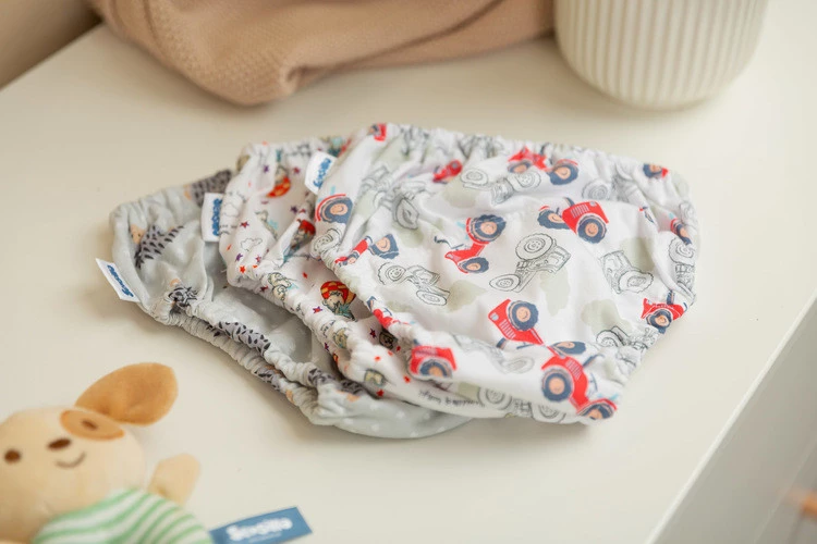 Stručné informace o školení usnadňují učení se čistotě. Jsou proto užitečné zejména v poslední fázi odstavování. Jsou také ideální pro první pár "opravdového" spodního prádla, které pomáhá naučit se samostatně oblékat. Vyrobeno z měkkého a vzdušného bavlna. Uvnitř mají vrstvu polyuretanová membránacož snižuje smáčení. Vzory v sadách jsou vybírány náhodně podle dostupnosti materiálu. Na druhé straně rozdělení na sady určené pro chlapce a dívky.