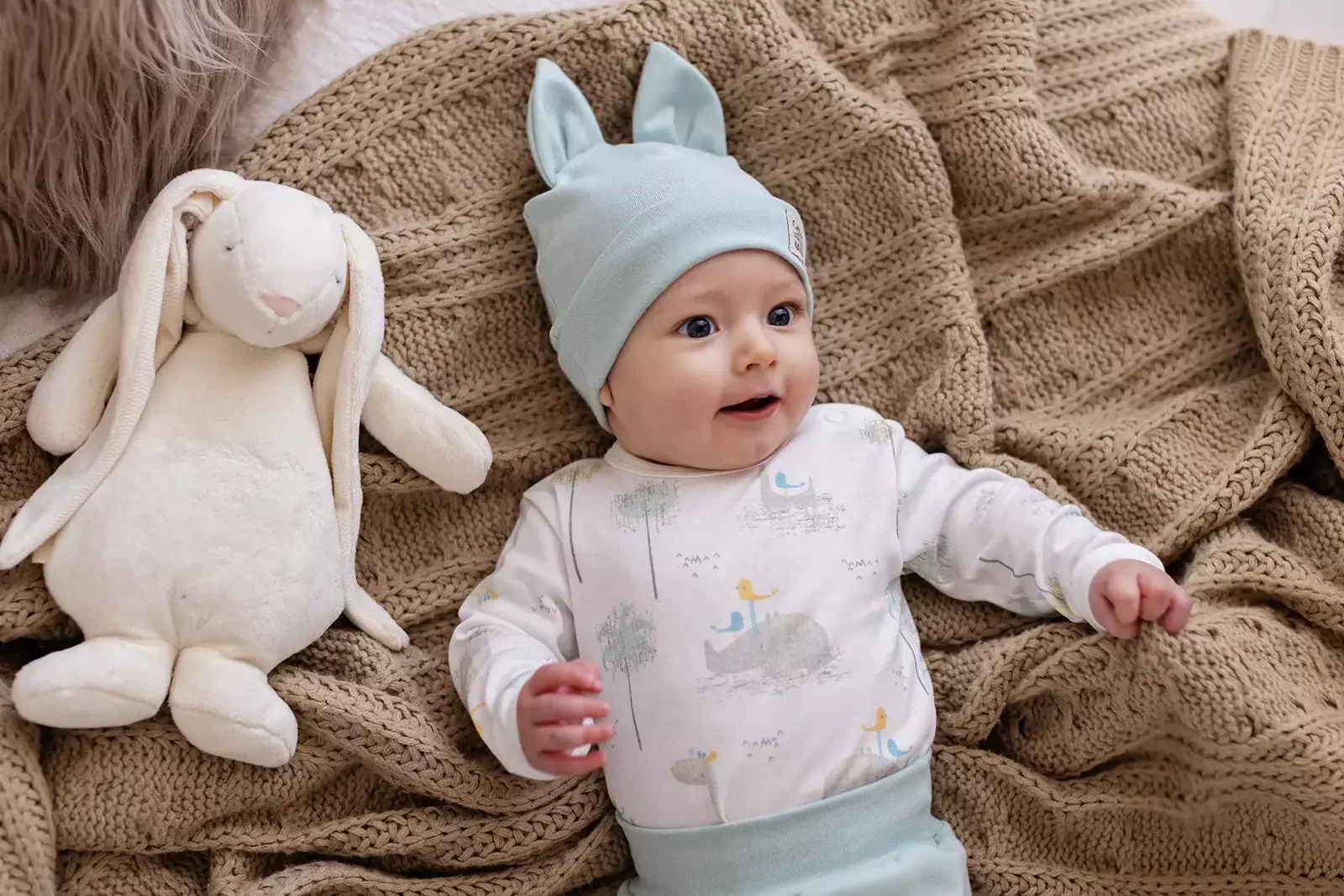 Jemná dětská čepice s roztomilými oušky je produkt vyrobený z vysoce kvalitní bavlny -  nesmí chybět  v šatníku vašeho dítěte. Čepice mintové barvy je vyrobena z příjemné kvalitní bavlny - skvělého, lehce strečového materiálu, který bezpečně zakryje dětská ouška a ochrání hlavičku dítěte před větrem a ostrým sluncem. Bavlněná čepice od polské značky Makoma  se skvěle hodí ke zbytku mint kolekce nebo k módnímu vzoru nosorožce. Vytvořte si cool set s kraťasy ve stejné barvě nebo  body z kolekce Rino.
