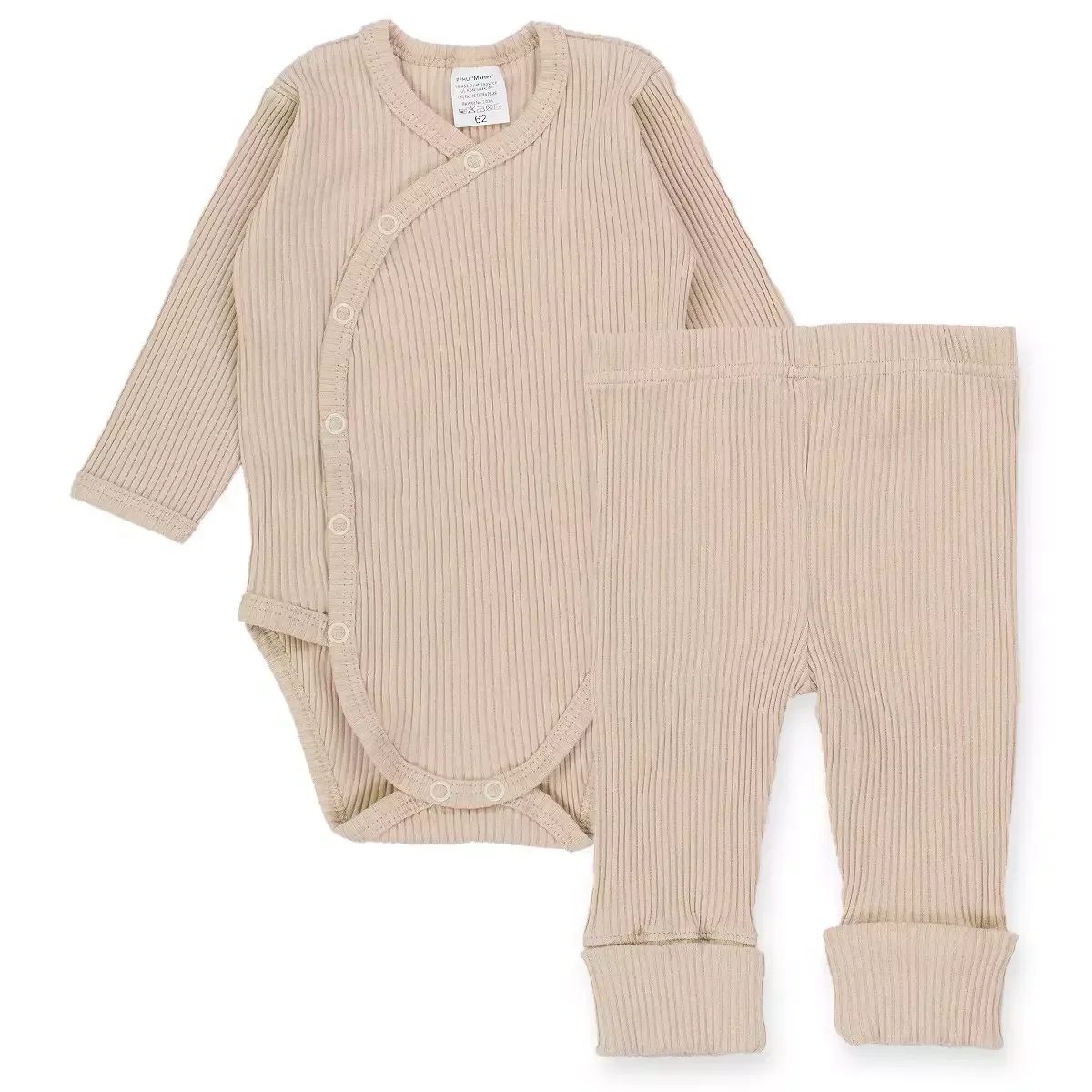 Kojenecká souprava - Žebrované psaníčko body + Kalhotky - Béžová