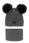 Kompletná zimná detská sada: šedý čiapka a šál s dvoma mašľami Krispi